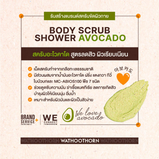 Avocado scrub, acne-reducing formula for smooth skin. Scrub beads are made from natural sea salt, combined with ingredients from avocado oil, guava, cucumber, kiwi, and gotu kola. And MC-ABIOS100, a plant with 7 types, helps absorb oil, kills bacteria, reduces acne, and nourishes the skin to be smooth, soft, and moisturized, making it look full of water. Suitable for oily skin and acne-prone skin.
