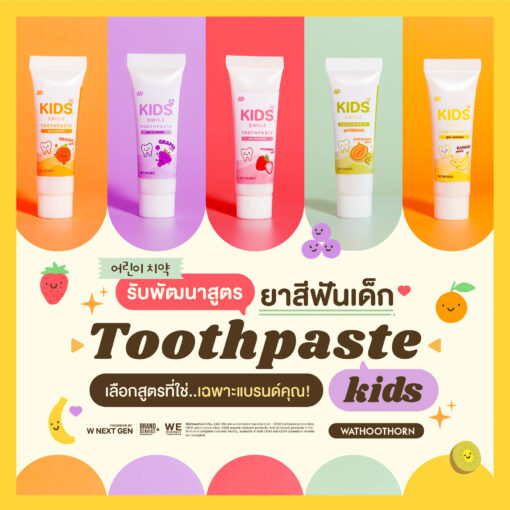 Kids Smile Toothpaste: Toothpaste formula for children, available in 5 popular fruit flavors: Orenge / Banana / Cantaloupe / Grapes / Strawberry. Sweet and gentle, no spicy taste, encourages children to brush their teeth every day.