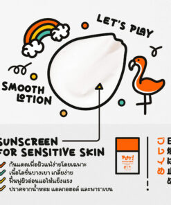 Gentle sunscreen formula for sensitive skin. The lotion is light and easy to spread. Free from skin irritants. Restore weak skin to be strong with extracts from Senseryn Organic Hobbs and Scared Patch Suizen seaweed from Kyushu Island. Protects skin from UVA, UVB, Blue Light. Suitable for all skin types, especially sensitive and easily irritated skin.