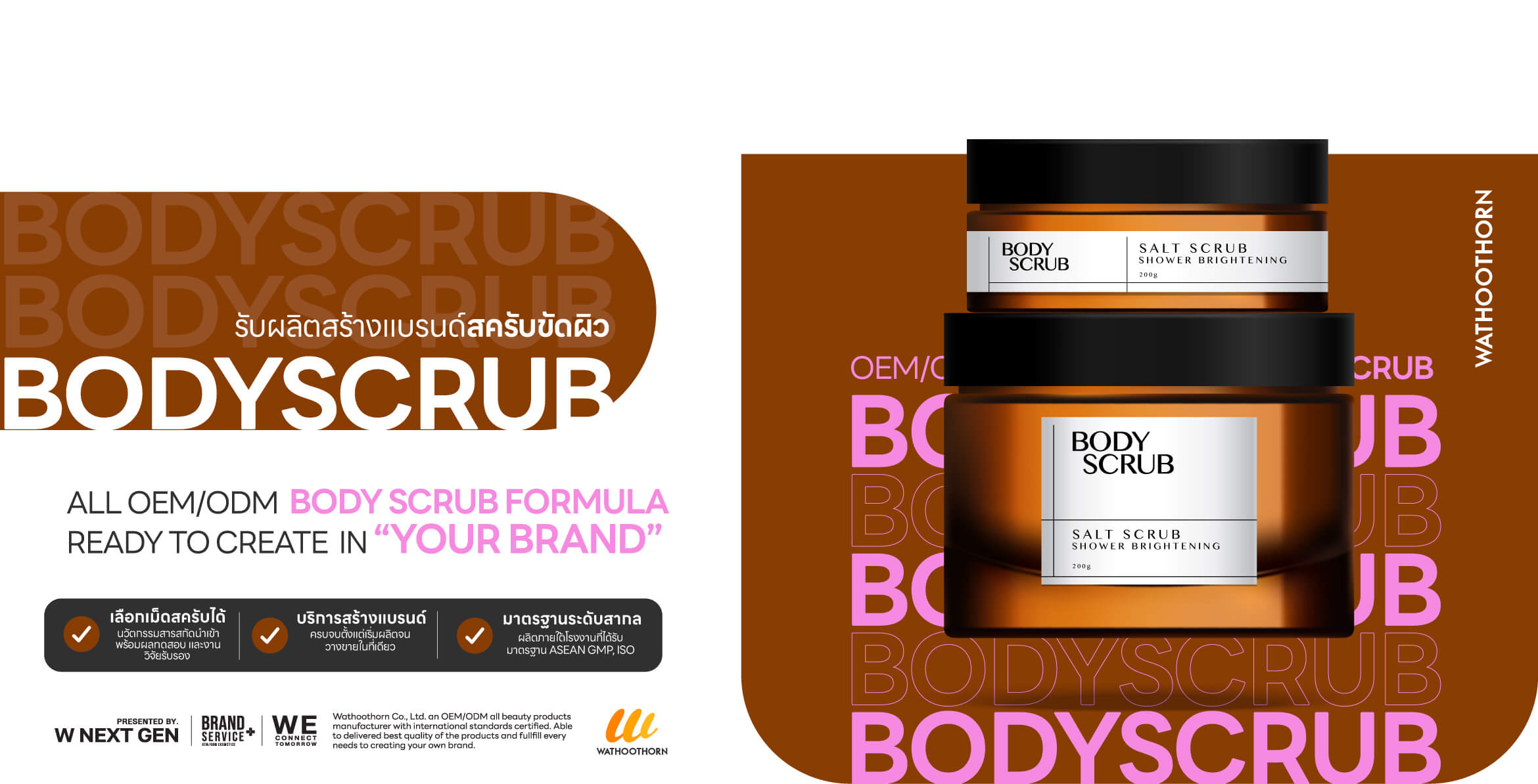 บริษัท วธูธร จำกัด โรงงานผลิตสครับขัดผิว รับผลิตสครับผิว พร้อมบริการสร้างแบรนด์สครับผิวครบวงจรในแบรนด์คุณ ควบคุมและดำเนินการผลิตภายใต้มาตรฐานสากล รับผลิตสครับผิว พร้อมด้วยทีมนักวิจัย คิดค้นและพัฒนาสูตร นวัตกรรมสารสกัดนำเข้าจากทุกมุมโลก พร้อมด้วยงานวิจัยรับรอง และผลทดสอบ พร้อมด้วยเทคโนโลยีเครื่องจักรการผลิตที่ทันสมัย พร้อมบริการขึ้นทะเบียน อย. และเอกสารรับรองสำหรับการส่งออก ต่างประเทศ พร้อมด้วยทีมโปรดักชั่น และทีมออกแบบ ที่พร้อมซัพพอร์ตแบรนด์ของคุณ ควบคู่กับที่ปรึกษาการสร้างแบรนด์ ที่จะดูแลคุณตั้งแต่เริ่มต้น ตลอดจนบริการหลังการขาย