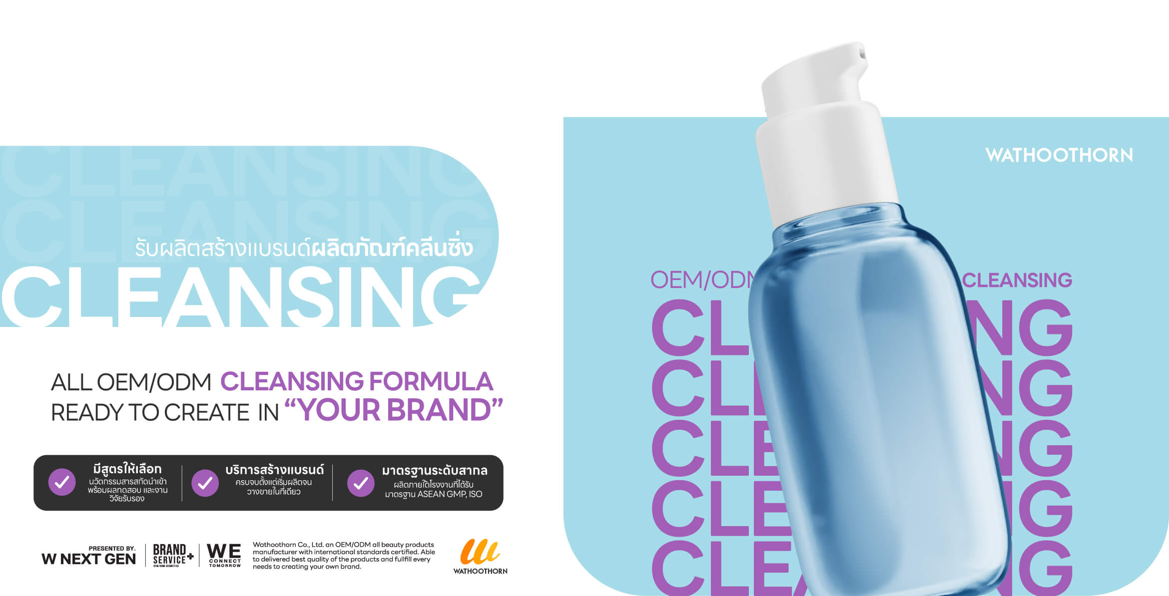 หากคุณเป็นเจ้าของแบรนด์ ที่มีแบรนด์ผลิตภัณฑ์คลีนซิ่ง หรือ ผลิตภัณฑ์โฟมล้างหน้าอยู่แล้ว หรือ กำลังมองหา โรงงานผลิตคลีนซิ่ง ผลิตภัณฑ์ทำความสะอาดผิวหน้า แต่ยังไม่รู้ว่าจะต้องเริ่มต้นจากจุดไหน ไม่รู้ว่าจะต้องเลือกสารสกัดอย่างไรให้ผลิตภัณฑ์ของคุณนั้น แตกต่างจากคู่แข่ง และได้มาตรฐาน บริษัท วธูธร จำกัด เราคือ โรงงานผลิตคลีนซิ่ง รับผลิตผลิตภัณฑ์ทำความสะอาดผิวหน้าทุกรูปแบบ โรงงานผลิตมาตรฐานสากล ที่พร้อมจะเป็นพาร์ทเนอร์ให้กับคุณ พร้อมทีมนักวิจัยที่สามารถพัฒนาสูตรขึ้นใหม่ ลิขสิทธิ์เฉพาะแบรนด์ของคุณ พร้อมด้วยนวัตกรรมสารสกัดล่าสุด ทั้งในไทย และนำเข้าจากต่างประเทศ โรงงานผลิตครีม ที่ให้คุณได้ครบตั้งแต่ต้นจนจบ ตั้งแต่เริ่มผลิตตลอดจนบริการหลังการขาย